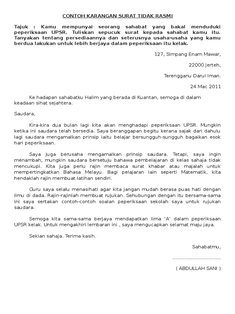 Surat tidak rasmi upsr 1. 192 Penerima Darjah Kebesaran Bintang Dan Pingat Negeri Perak Tahun. Semoga saudari sekeluarga berada dalam keadaan sihat sejahtera.